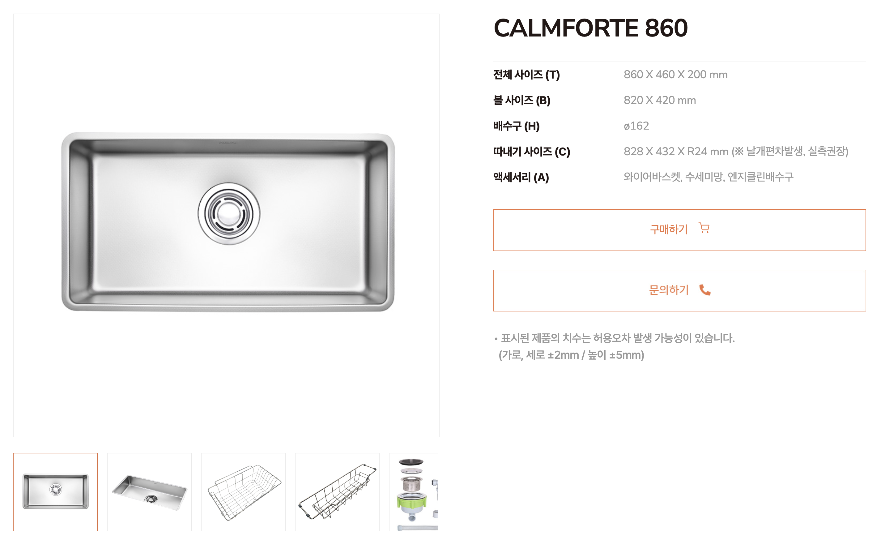 자세한 스펙은 여기서 확인하세요. https://baekjosink.com/product_list/calmforte-860/