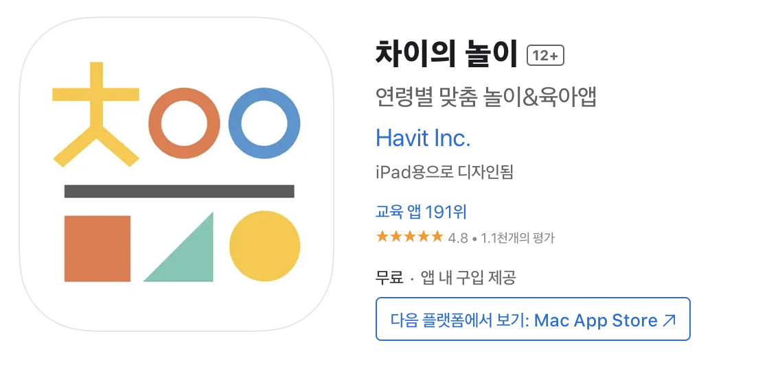 - 특징: 2~8세 'playlearning' 방식의 글로벌 교육 앱 (600+ 학습목표, 1,200+ 활동 제공)
