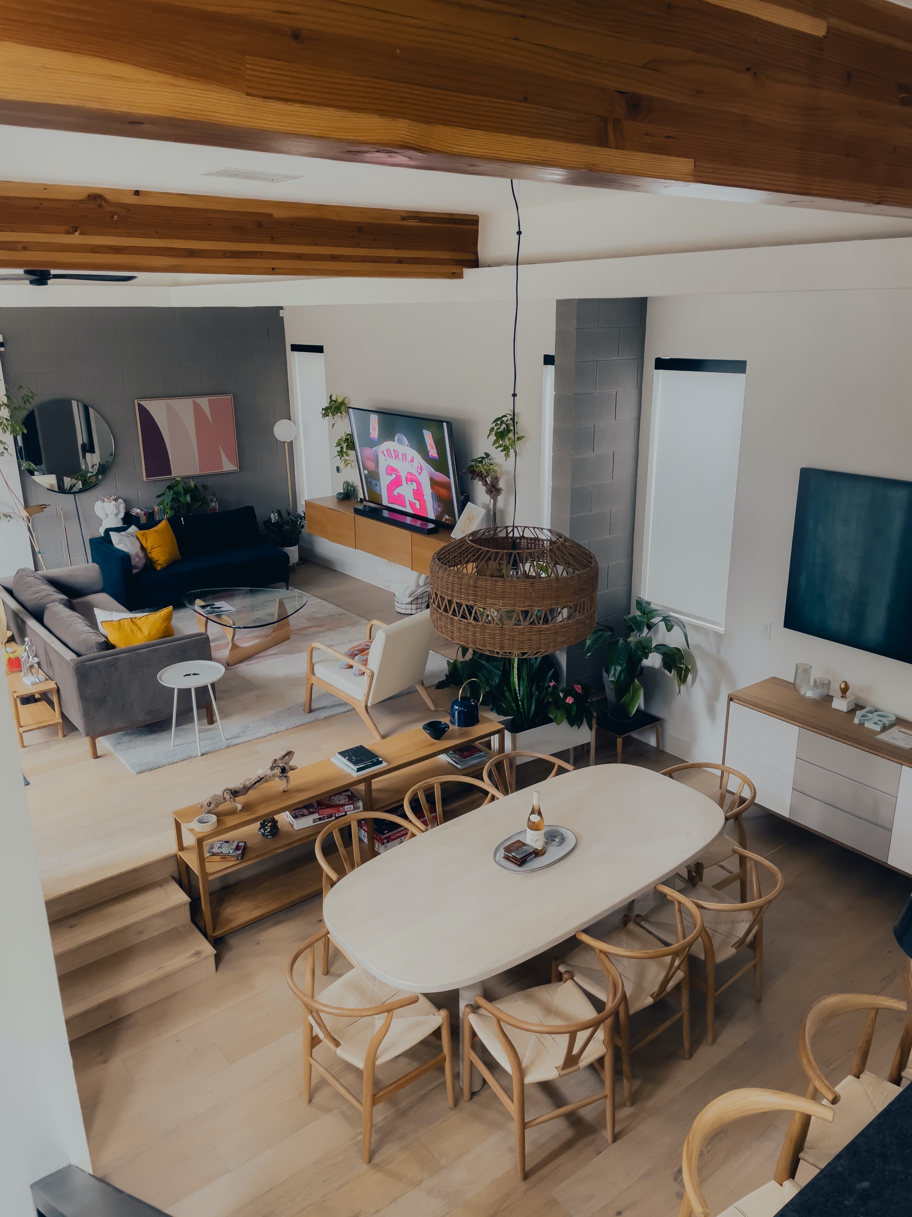 여름은 자연과 가까워지는 시기이기도 합니다. 자연 소재인 우드와 라탄, 자연스러운 텍스처를 활용하여 가구를 선택해보세요. 녹색 식물들을 활용하여 공간에 생기와 활력을 불어넣을 수도 있습니다. 더운 여름에도 실내에서 시원한 자연의 느낌을 느낄 수 있습니다. - 쿨한 라이트와 팬으로 시원한 분위기 연출